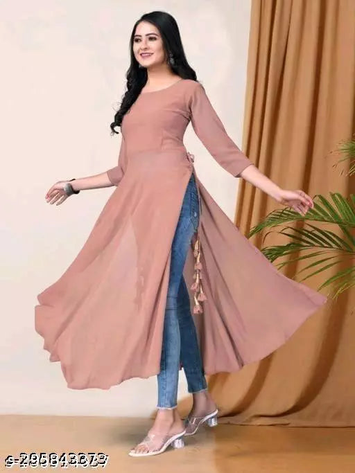 Classic Pink Women Georgette A-Line Kurti