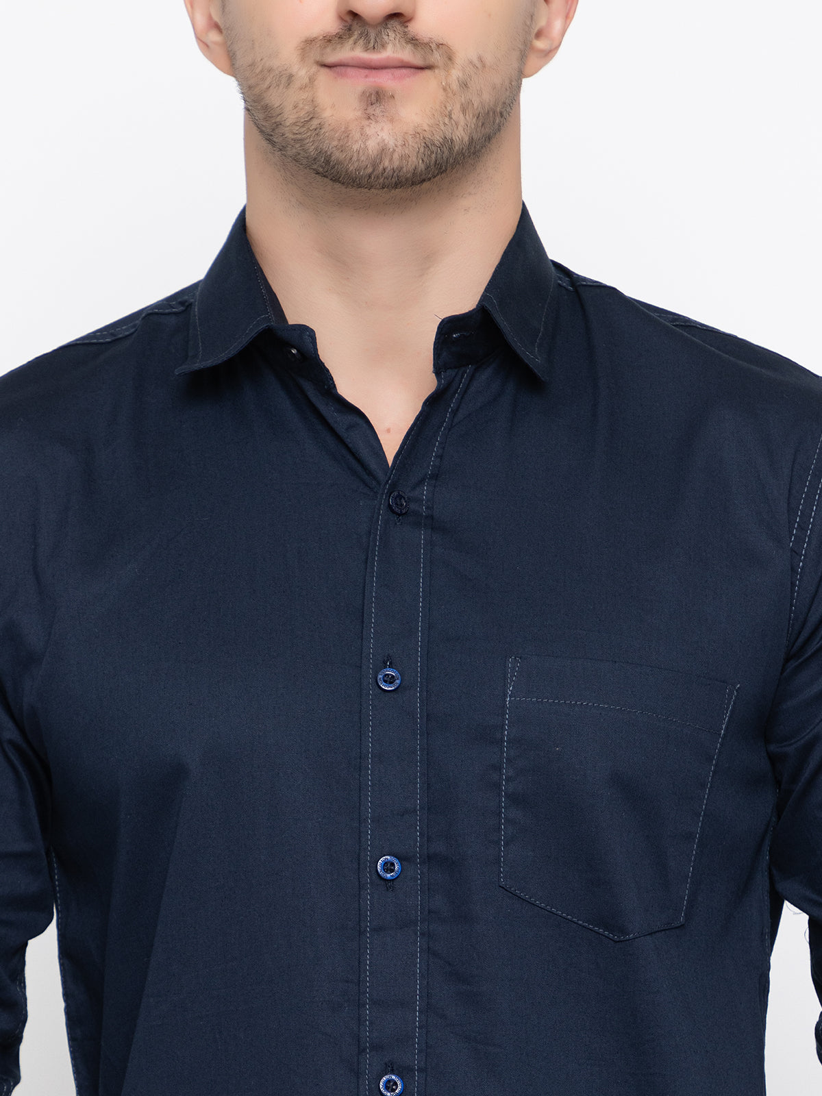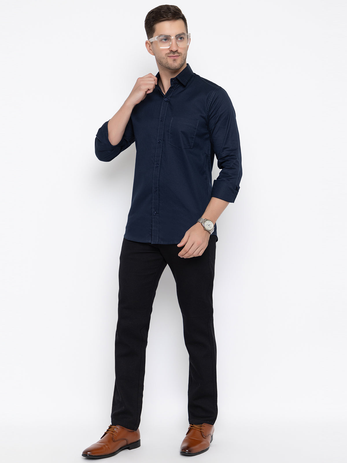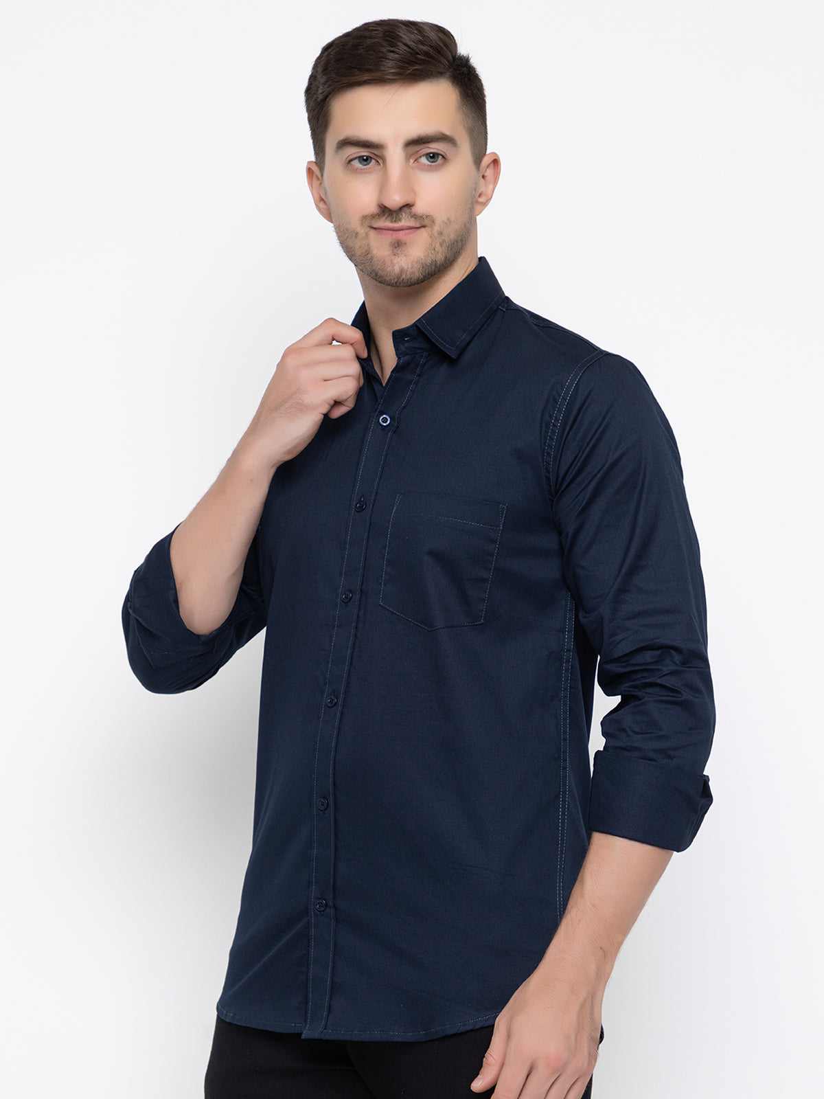 Men Regular Fit Solid Spread Collar Casual Shirt